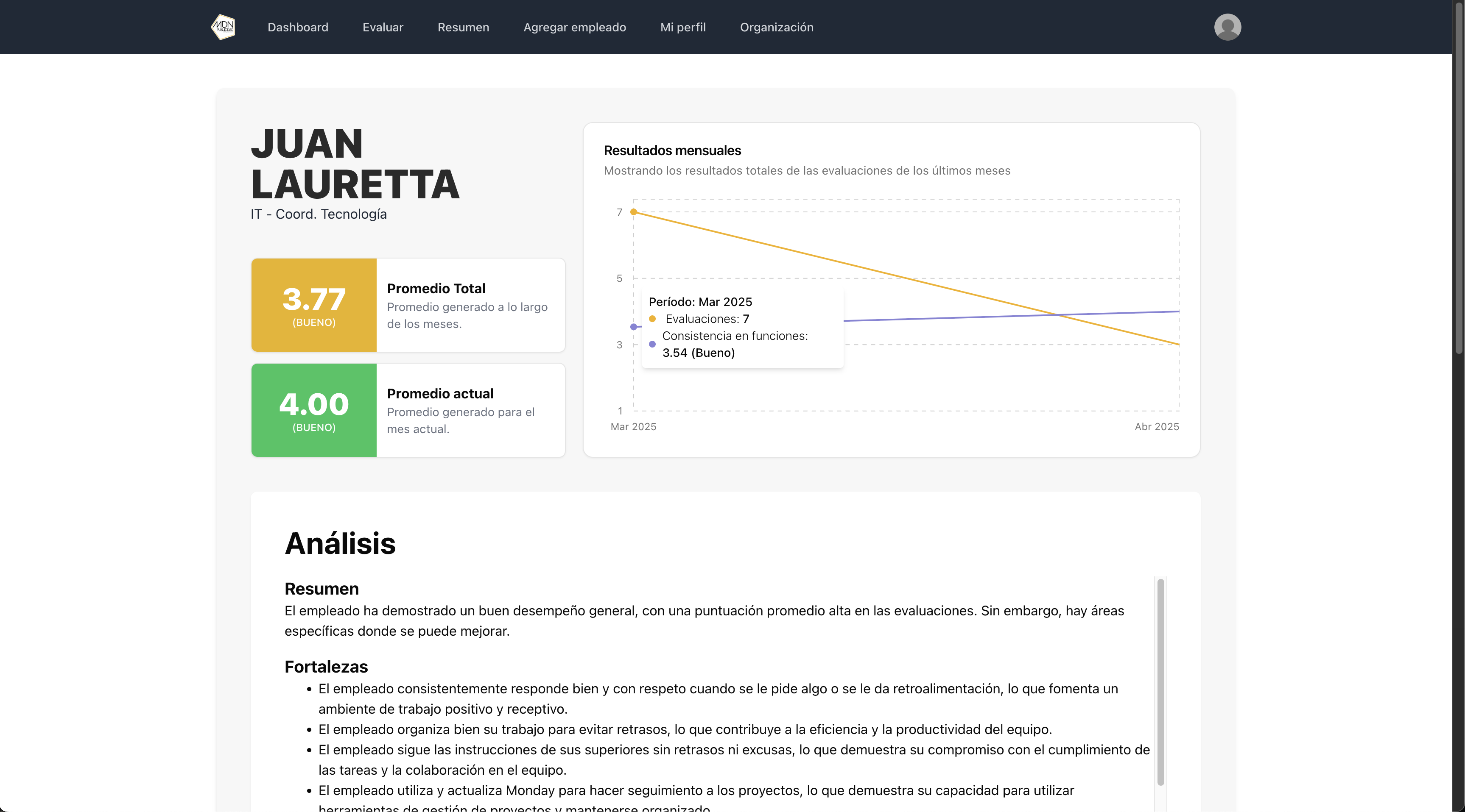 A full-stack web application built to automate and simplify employee performance review at MDN Publicidad. Worked closely with coworkers to design the workflow, then developed the tool end-to-end—including evaluation forms, scoring logic, and reporting features. Note: Code and live access are restricted (company product), but a demo video is available....